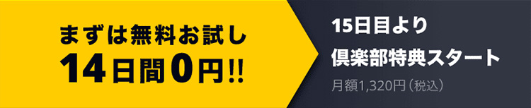 14日間無料でお試しできる。お試し終了後は、月額1,320円(税込)で見放題!追加料金は一切かかりません。