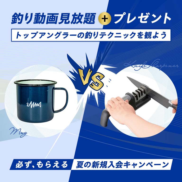 キャンペーン期間中に釣りビジョン倶楽部(VOD)に新規登録・応募し、定額制月額有料サービスを1回以上ご利用いただくと、もれなく「釣りビジョン・オリジナルグッズ」をプレゼント!