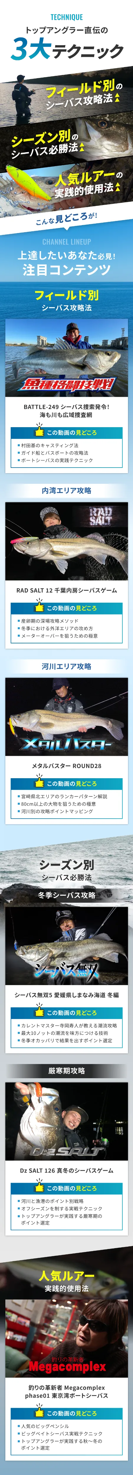 釣りは何でも好きですが、とくに「オカッパリシーバス」が好きなので、高橋優介さんの『RAD SALT』で勉強しています。どんなルアーを使っているのか、どんなカラーで釣れているのか、狙い所やレンジキープの解説はとても参考になります。