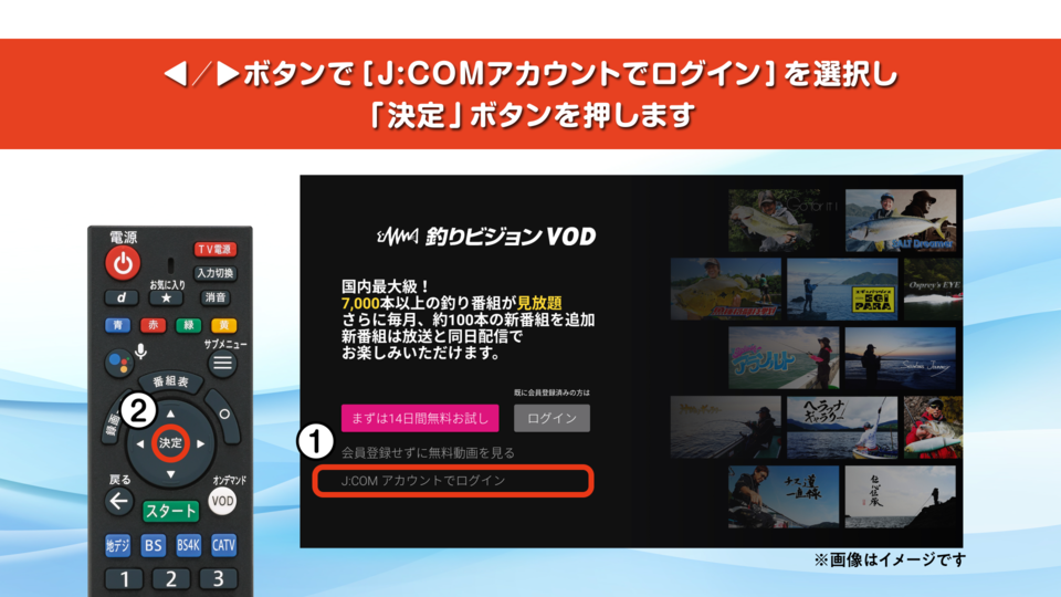 TVでの視聴はJ:COM LINK、Amazon Fire TV、Android TV、Chromecast with Google TVをご利用ください。(J:COM LINK以外の視聴方法についてはこちらからご確認ください。https://vod-faq.fishing-v.jp/faq/tv/index.html)